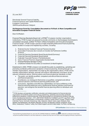 FPSB Europe Response to European Commission Consultation on Fintech (2017)