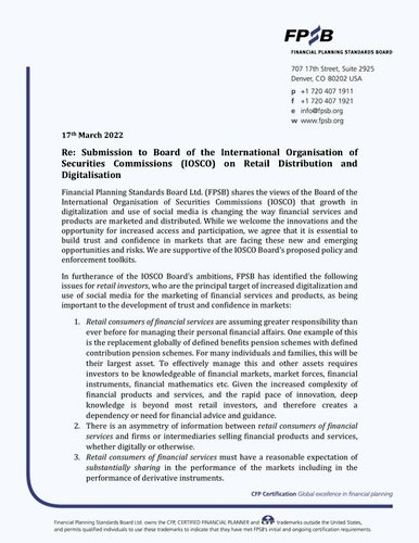 FPSB Response to IOSCO Consultation Report on Retail Distribution and Digitalisation (2022)